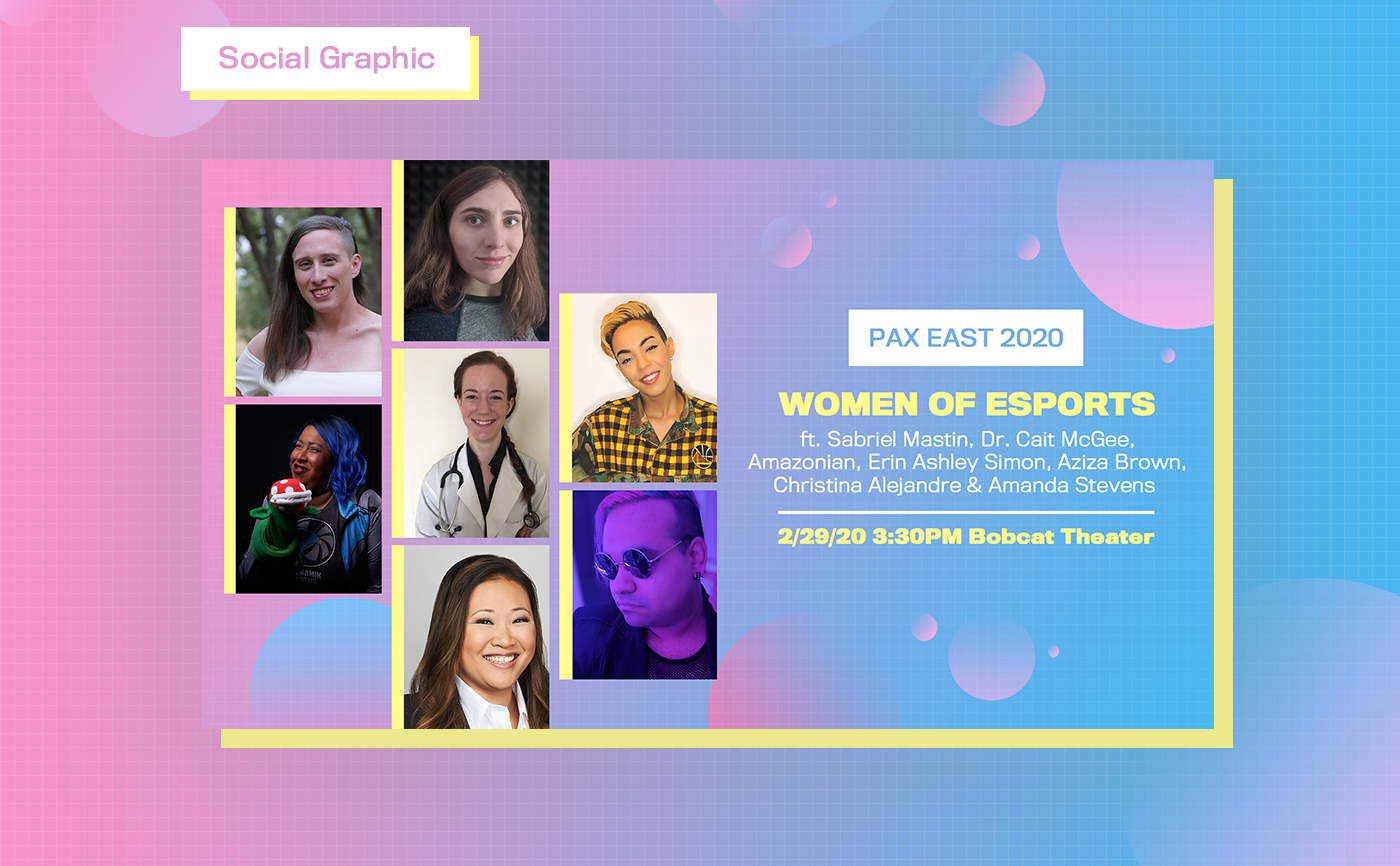 Presentation and social media graphics created for the Women of Esports panel at Pax East 2020